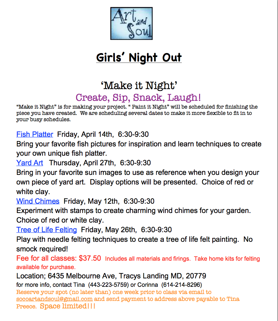For Mor Info: Tina (443.223.5759) and Corinna (614.214.8296); or socoartandsoul(at)gmail.com