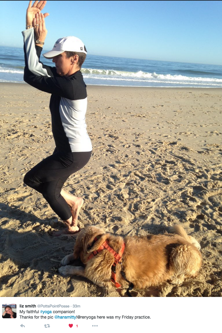 Here is what one of our yoginis was up to on the Friday post Thanksgiving. Accompanied by the sand, beach, and faithful friend, it seems like a wonderful outing.