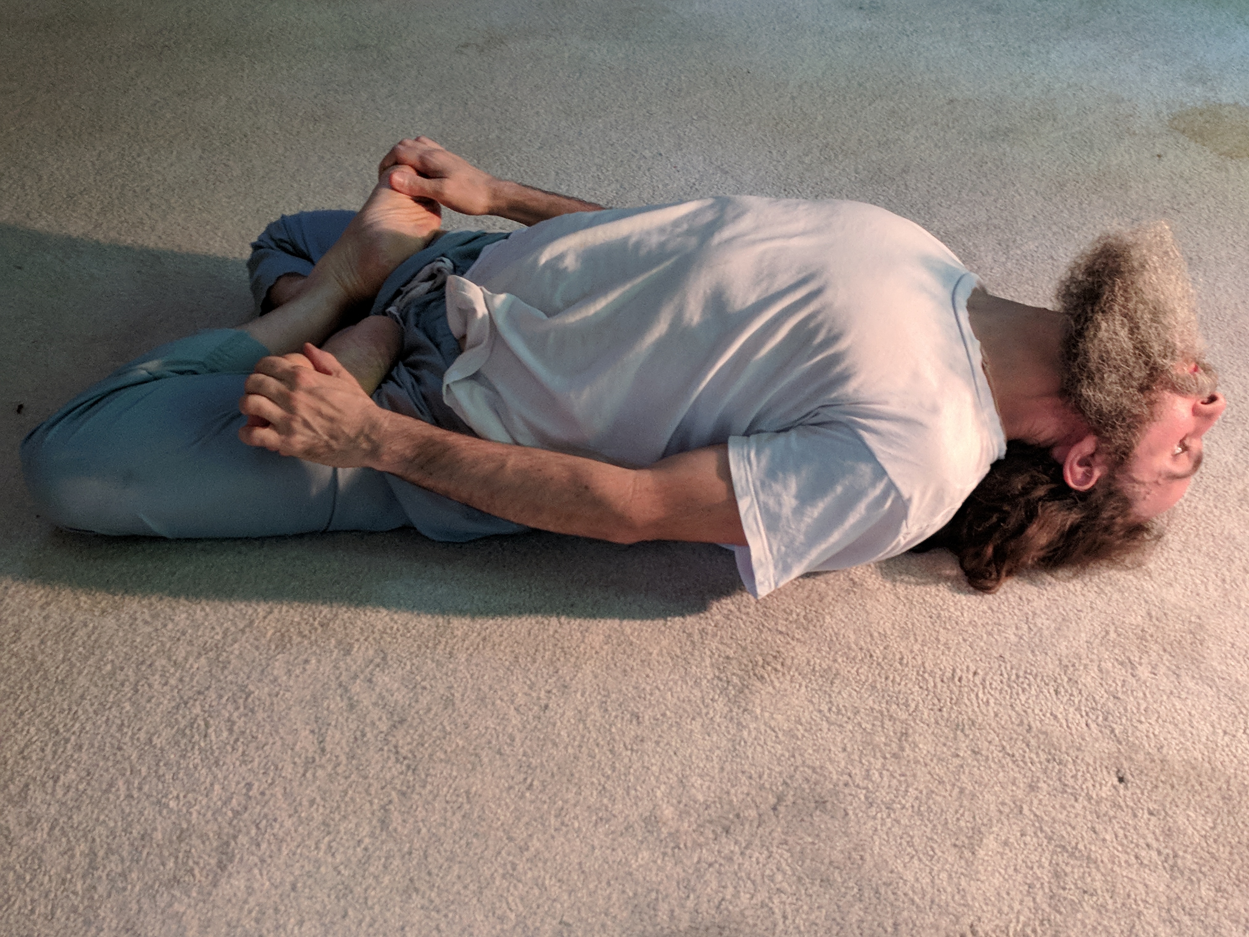 Here is someone else making an attempt at fish posture, but he does not get nearly the degree of the backbend (nor does he look as joyous):