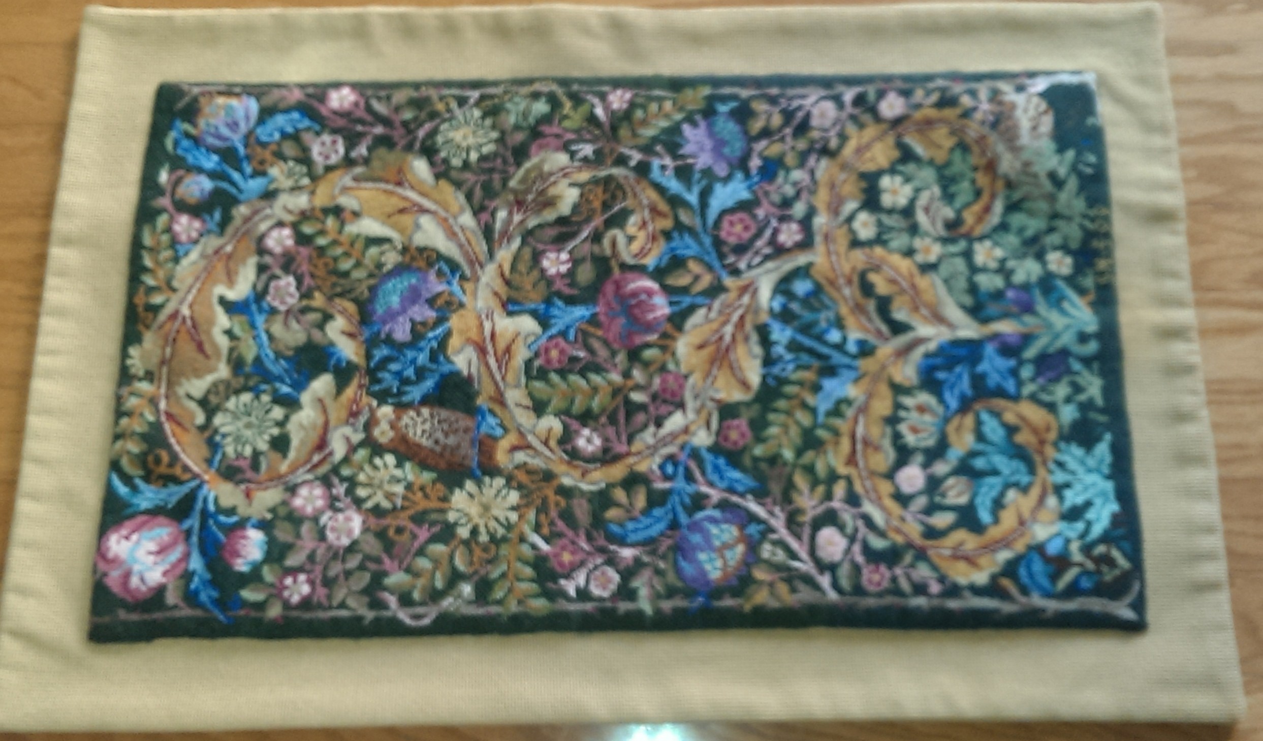 The below work has a heavy duty backing and is used as runner; and it was difficult to get a clear picture of it – suffice to say it is quite intricate.
