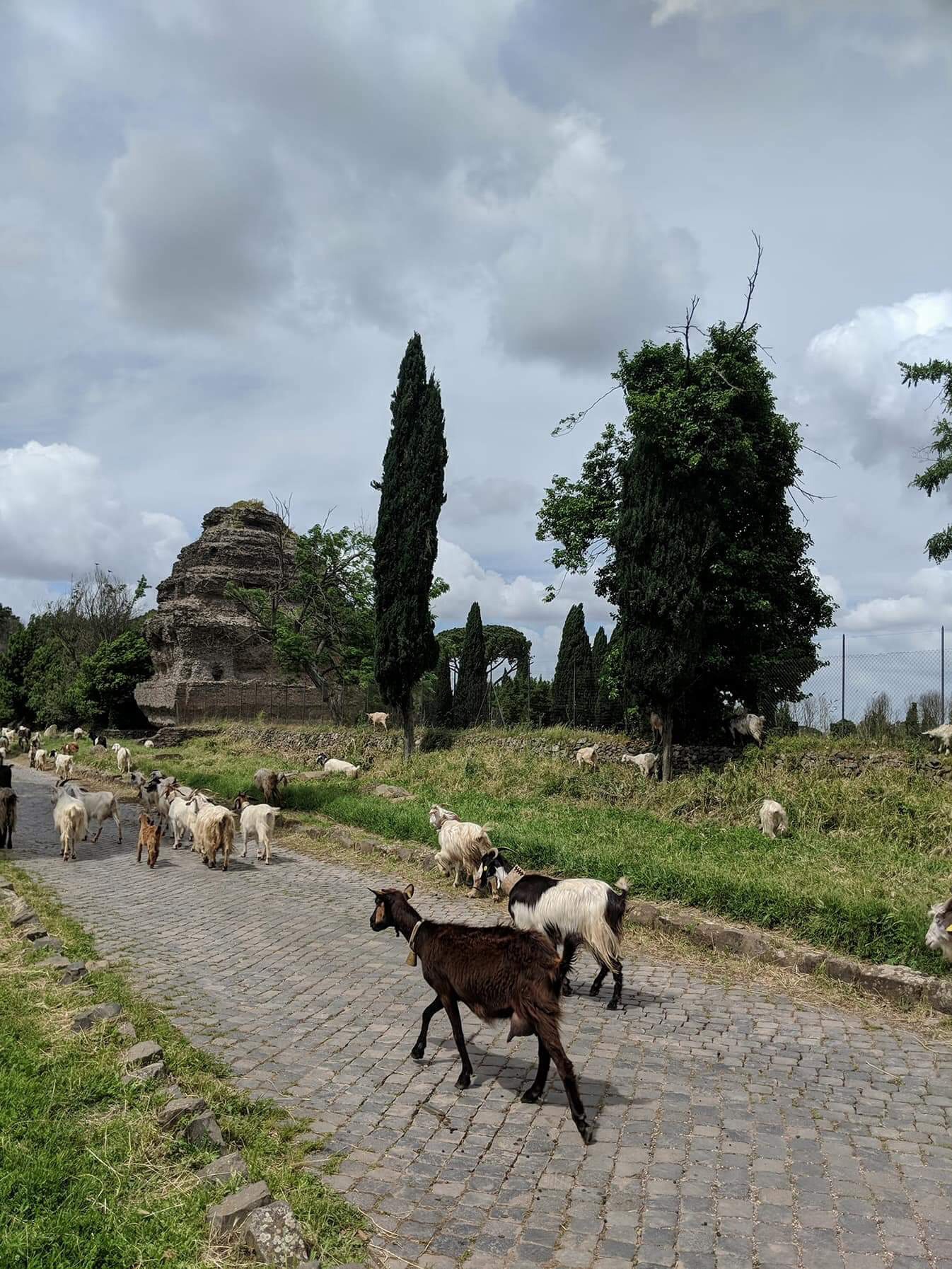 Our last day (Mon 5/14), spent hiking about 10 miles on the Appian Way, the ‘queen of roads’ built in 312 BC…these were our traveling companions! On our way home tomorrow…