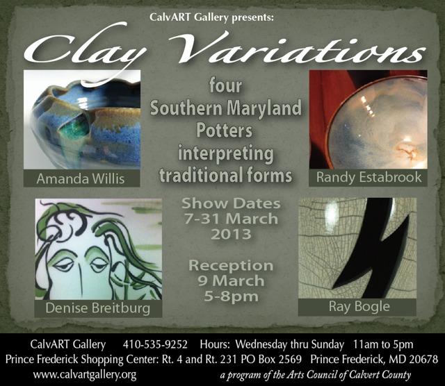 Here we feature Beach Baby Pottery, owned and operated by Amanda Willis of Calvert County. Details of her upcoming show are below.