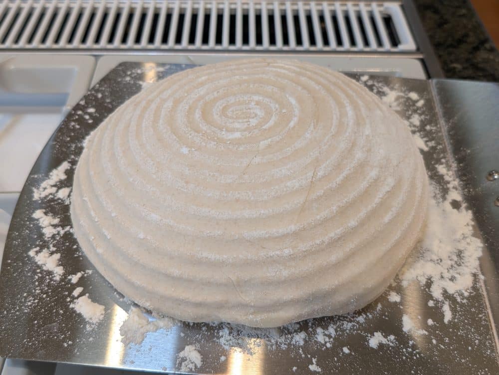 The next three photos are of a sourdough bread – it was our first time using a banneton…