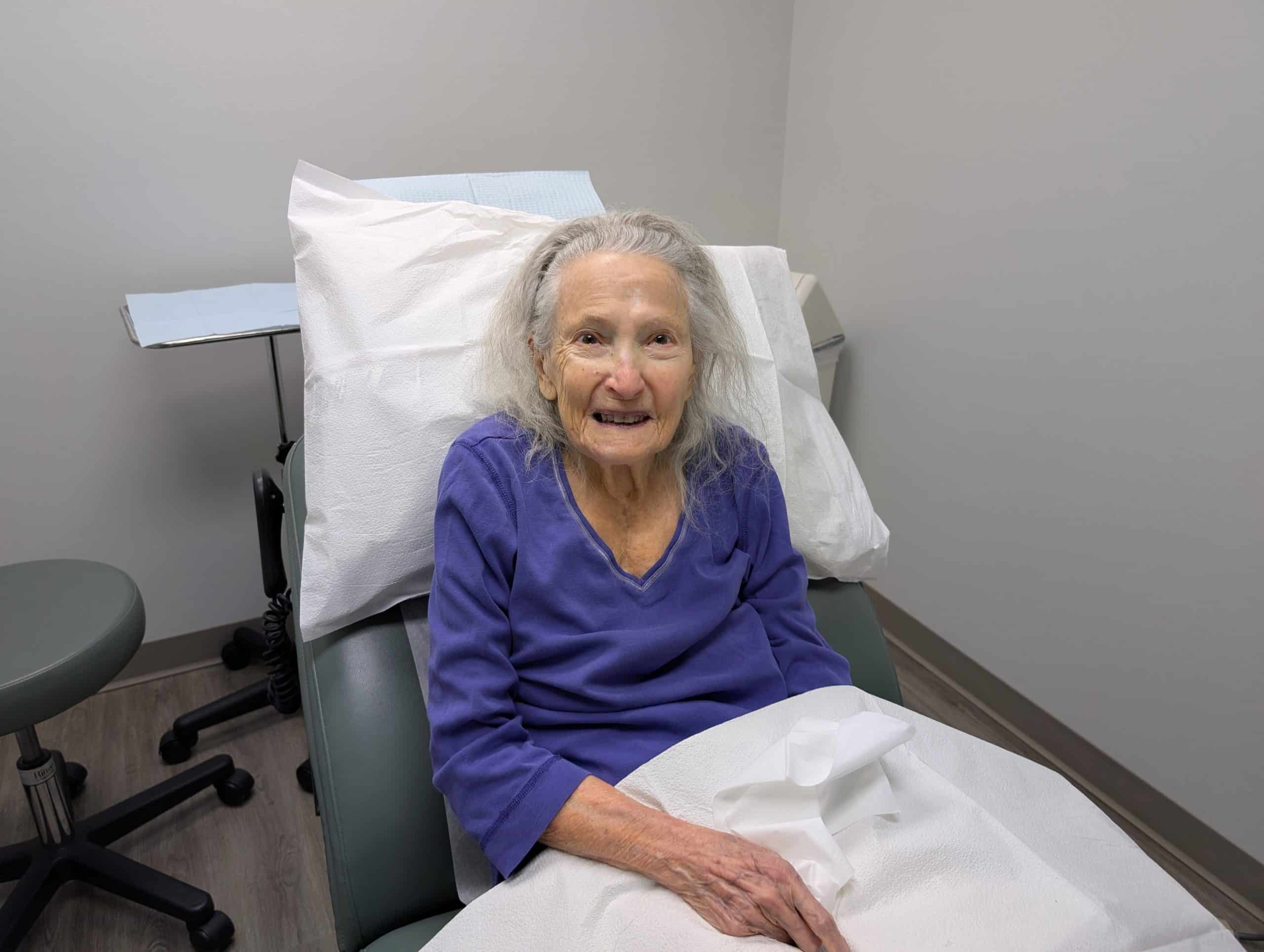 From Monday (1/20) to Wed (1/22), mom was just milling around the house. Overall, she is doing fine – holding her own…here she is below at her dermatology appointment.