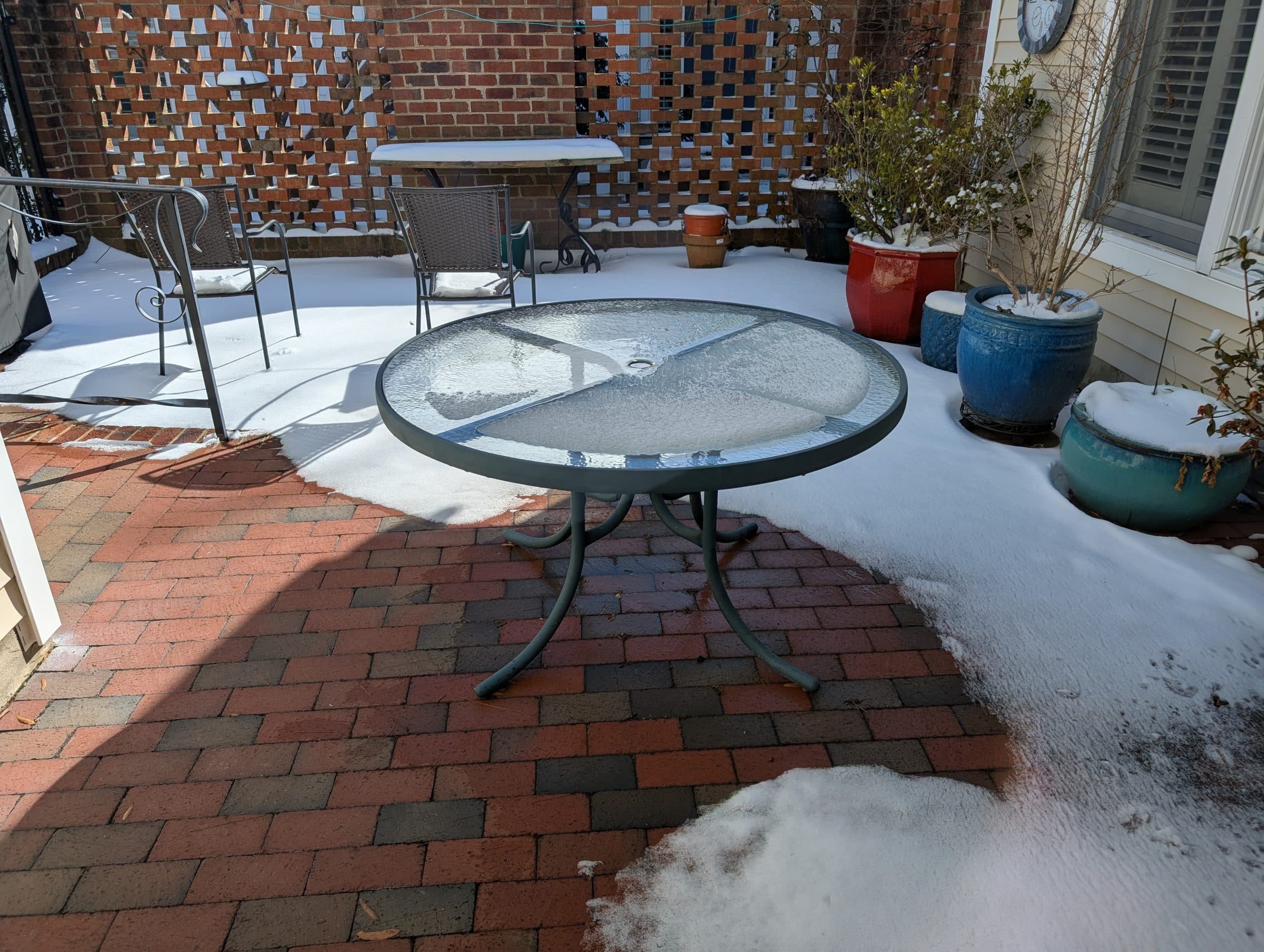 And here below is how the sun did a great job of melting out our patio table and brickwork.