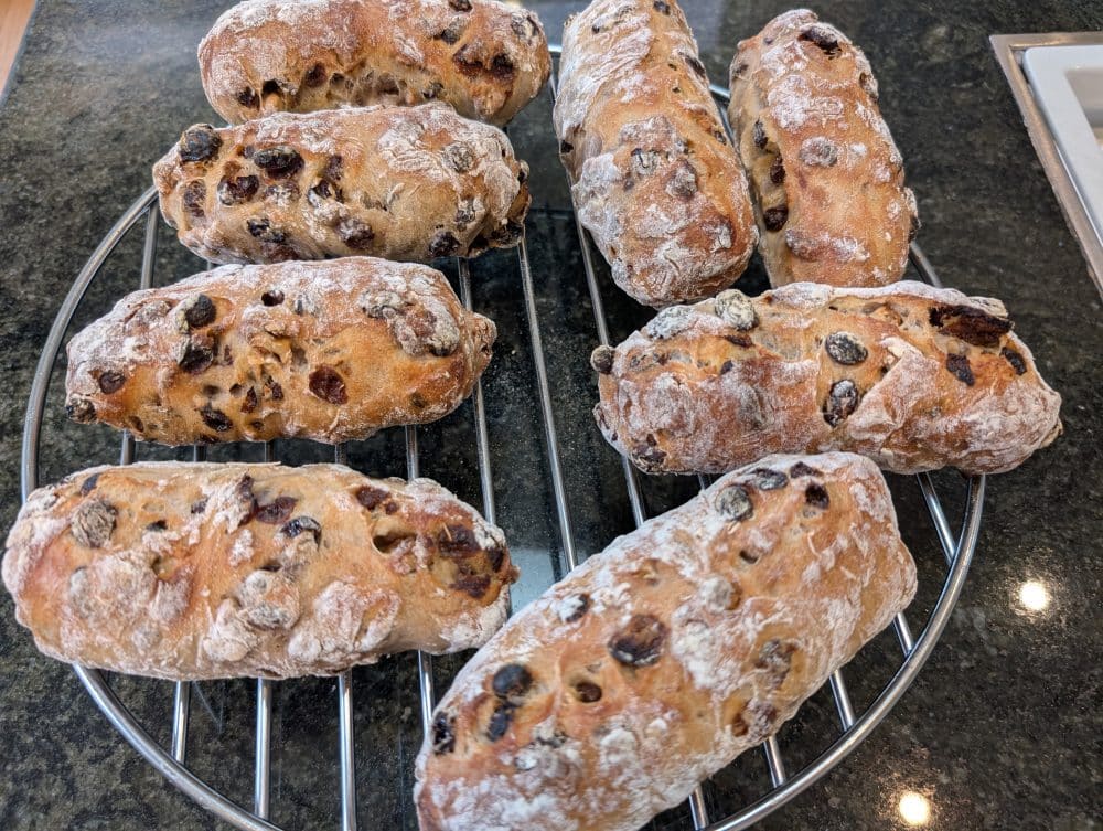 We also baked these olive baguettes…we shared the above sourdough and the below baguettes with our neighbors who are moving.