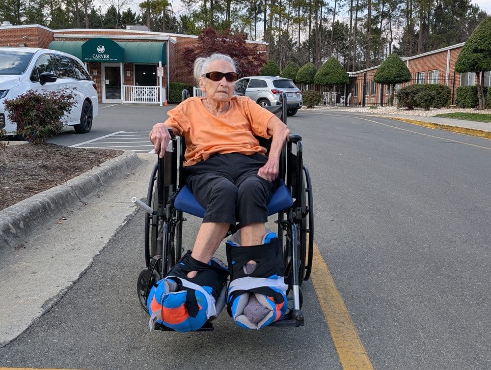 The discharge process was smooth; we emptied out the room; we checked in with the wound care nurse; there was a round of good-byes; and, out we went. One person accompanied us to the car, but I did all the transfers etc. They did tell us that within 30 days we can check back in to the rehab without needing a hospital visit. I told them that that was good to know but we have no intention of doing that. 😊