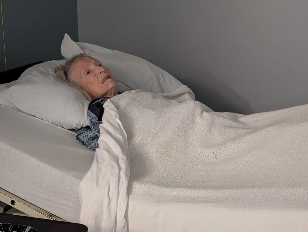 From the shower we went down to the medicare bed (and yes, I let them do that transfer) as that was all clean and ready for work. The nurse looked mom over from head to toe and changed the bandage on mom’s right heel. It was not as bad a wound as she thought it might be, but she did give her opinion that it would / might never fully heal. That made me infuriated as all hell at the rehab place as it happened on their watch. But let’s see, mom might surprise us!!