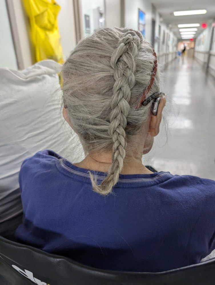 Mom hit the hay for good at around 11pm. So we are extending the length of her days. Her fancy bed comes tomorrow and that will go in her bedroom. So this will be the only night that she sleeps in the main part of the house. The shower wheelchair is also on the way. The plan is to shower daily as we’ve always done. And the big bonus will be if we can get her to use the specialized shower wheelchair for toileting as well.