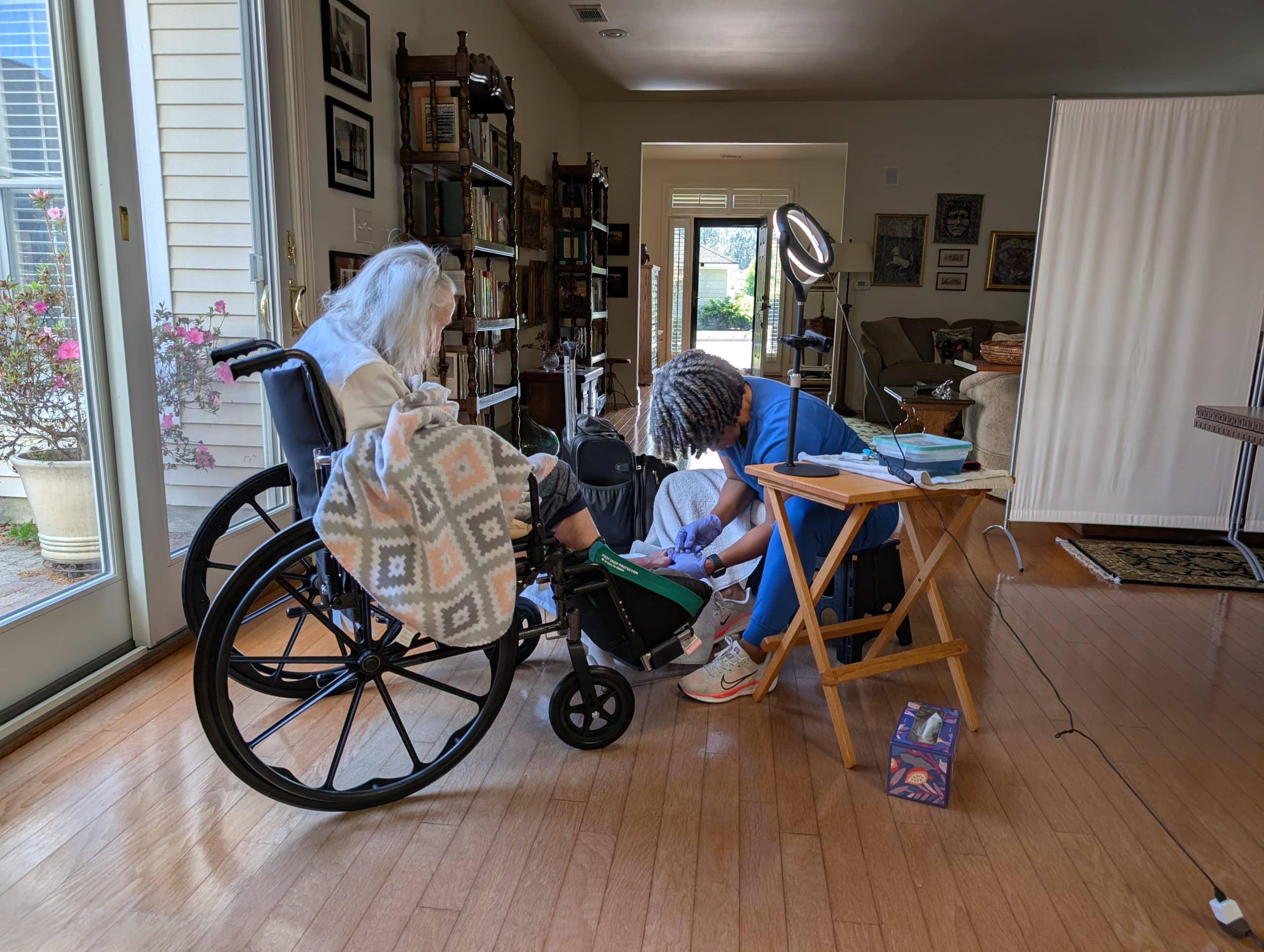 We need the nurse to ensure the skin condition is going in the right direction. Based on their overall assessment tomorrow, we will have 1 – 2 nurse visits per week (45 min each), 2 – 3 aide visits per week (1 hour each), and the option to ask for volunteers to come sit with mom while I do errands etc.