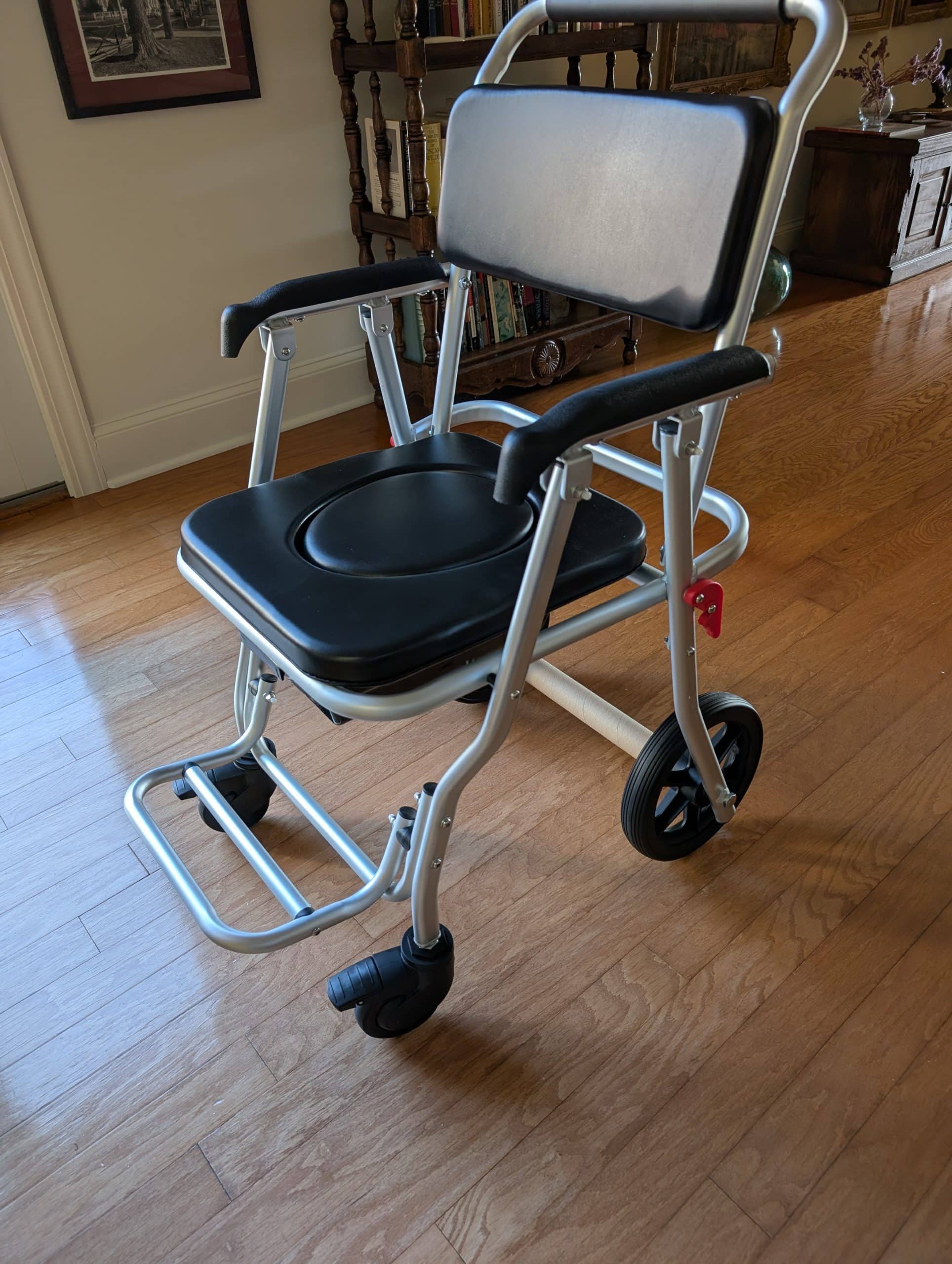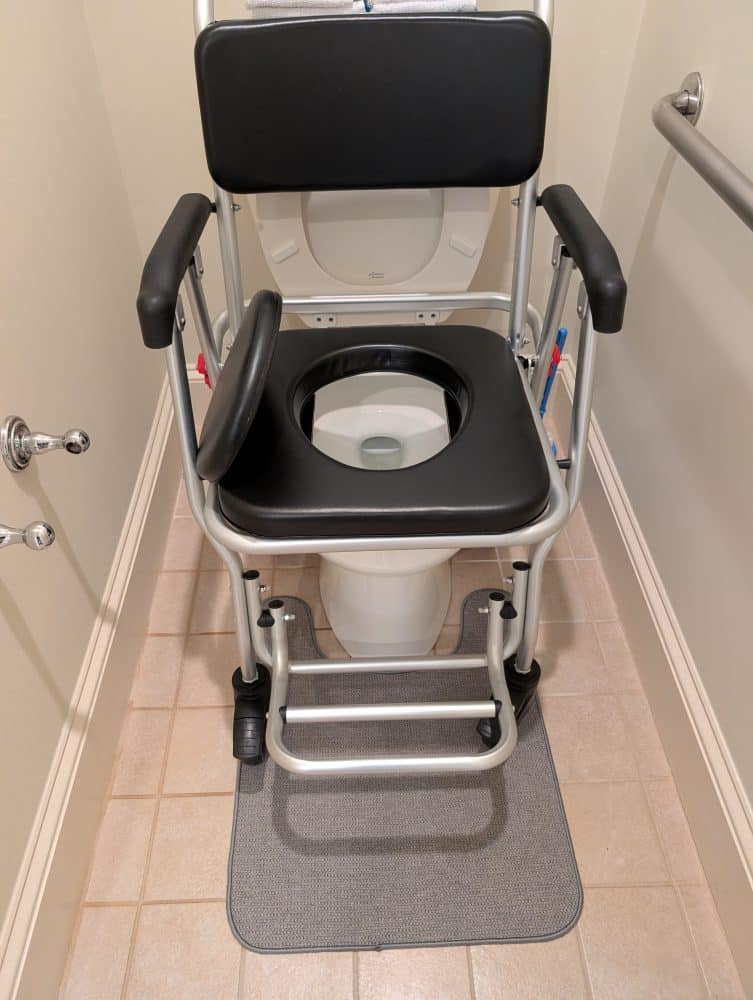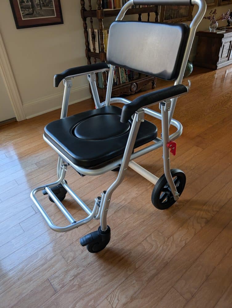 Below: Here is our new 4-in-one shower wheelchair (not covered by hospice) that also fits over a toilet and can be used as a stand-alone commode. We will use it tomorrow to get mom in the shower!!