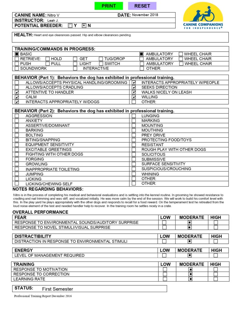 Check out how well our guy (photo at bottom) is doing in training….Go Nitro!!
