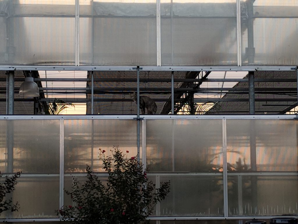 We were not alone during the evening. The resident “garden by day” and “greenhouse by night” cat spied on us from her lofty perch and meowed the entire time. She was really keen to practice with us.