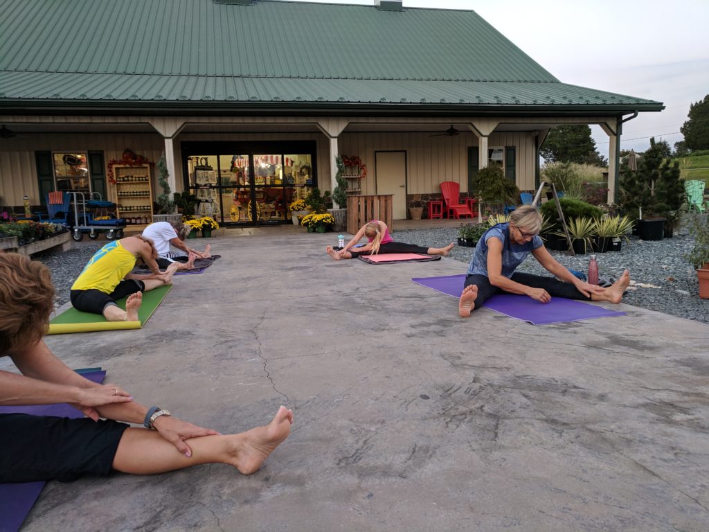 This past Thurs, Sep 20, we concluded our outdoor yoga season with a stellar evening. In total, we were a perfect 5 for 5, as all of our scheduled outdoor yoga sessions from May to September were met with fantastic weather and spirited participants. And, of course, our deepest gratitude to our gracious hosts, Ray and Stacy Greenstreet, along with their wonderful staff, of Greenstreet Gardens….