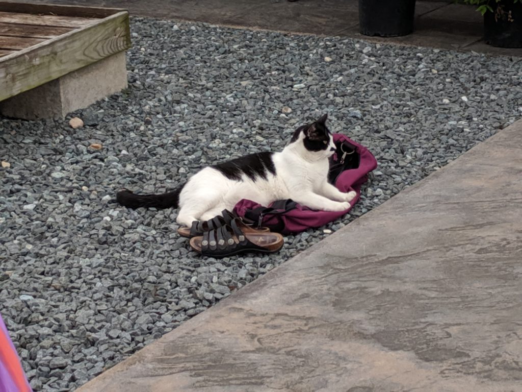 And Patches was looking on much of the time, checking for quality control and ensuring none of the mat bags blew away.