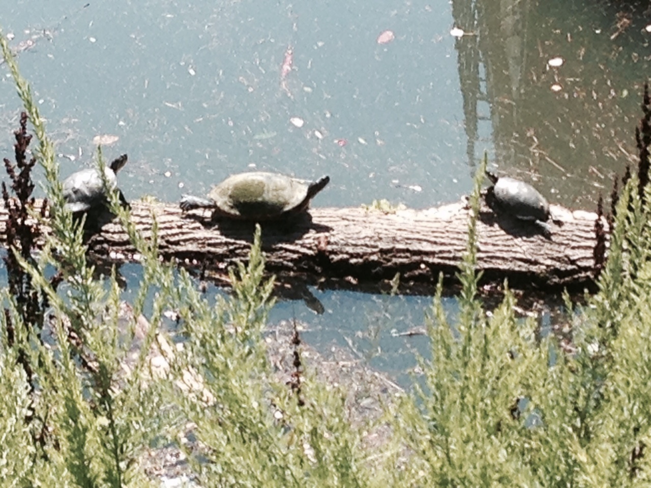 Here is a close-up of the middle turtle in action – he has definitely reached “lift-off”!