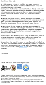 The SoCo Arts Lab has been a wonderful addition to our community. I have been to a number of their open-houses, and many of some of our longtime yoga practitioners play a leading role in the Lab, both as co-founders and instructors.