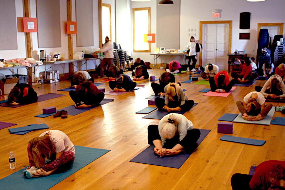 [Moderator’s Note: The writer’s above described experience is based on the introversion of mind – i.e. a meditation. True to the yogic approach, such experiences can be had even when done in a roomful of people as shown below. That is part of the beauty of yoga – the mind can be withdrawn to a point of inner stillness regardless of the external circumstances.]