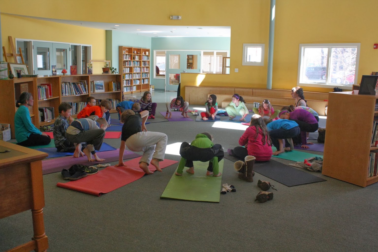 One of our longtime yoga moms – Sarah – invited our yoga instructor, Kate Spano, to lead some yoga sessions at the Montessori school that her children, Ellie & Evan, attend. Here below are a few photos from this event as well as Sarah’s account of the day. (Click to enlarge any photo.)