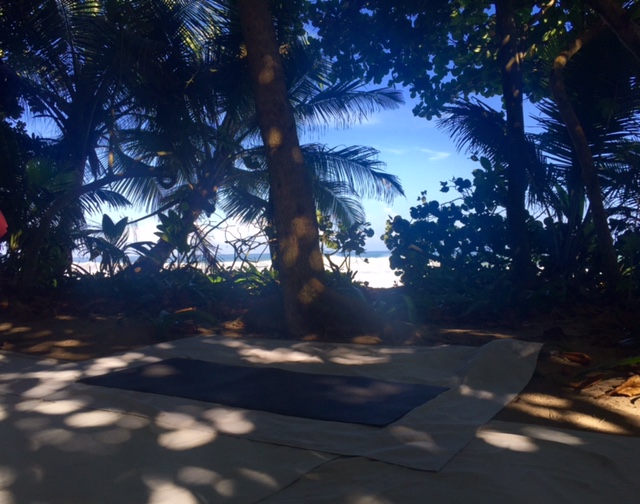 I took numerous photos from my trip and thought I’d share a few. Most are from the studio I told you about, Barefoot Yoga on the beach under the canopy. I also included some photos from the Caracoles Island and other local beaches. The last one is from Crash Boat Beach 🙂 My travel Manduka mat was put to work daily 😀