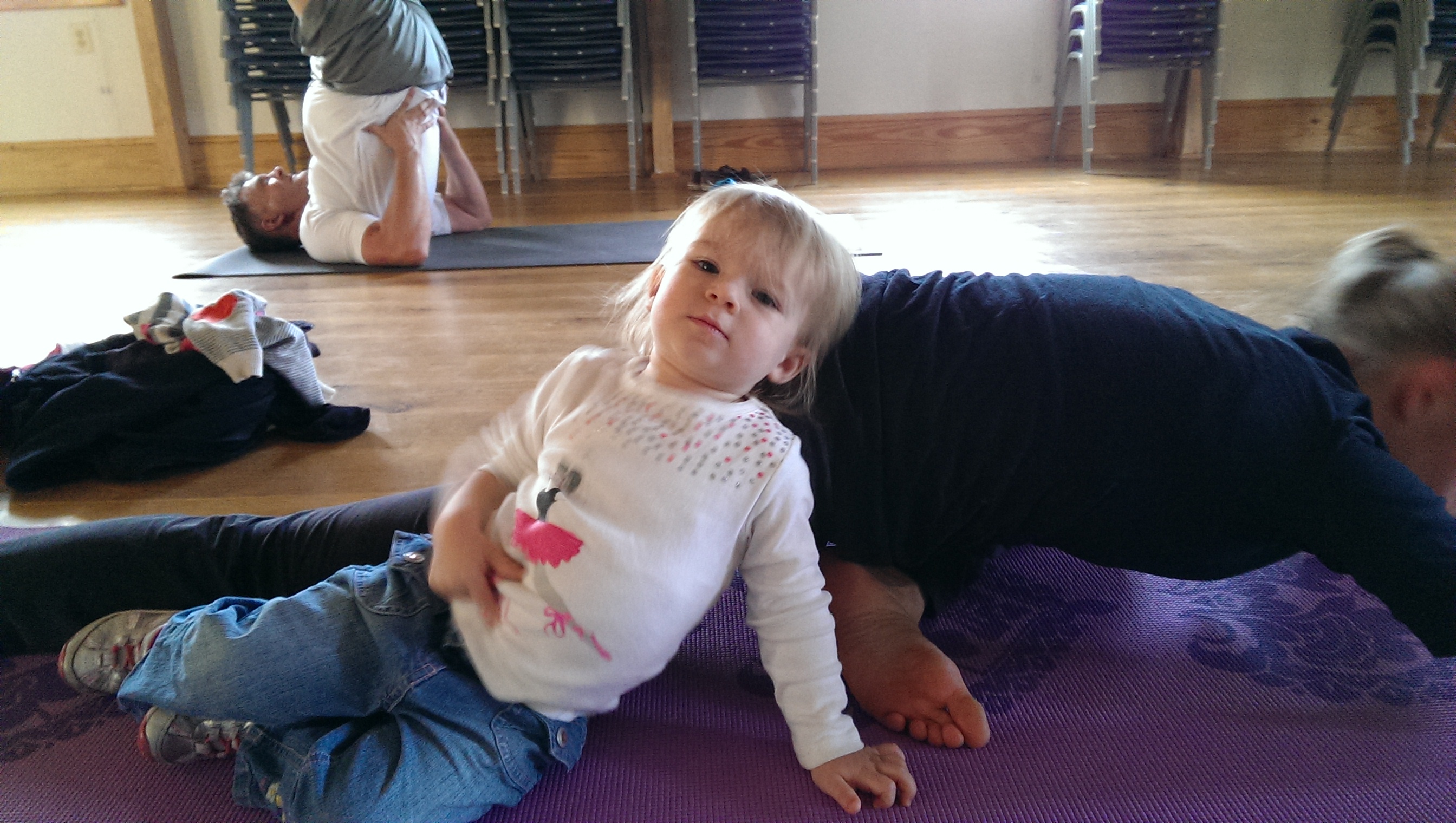 On Saturday we had a community of young ones in class. Moms did lunges and arm balances and kids did their thing.
